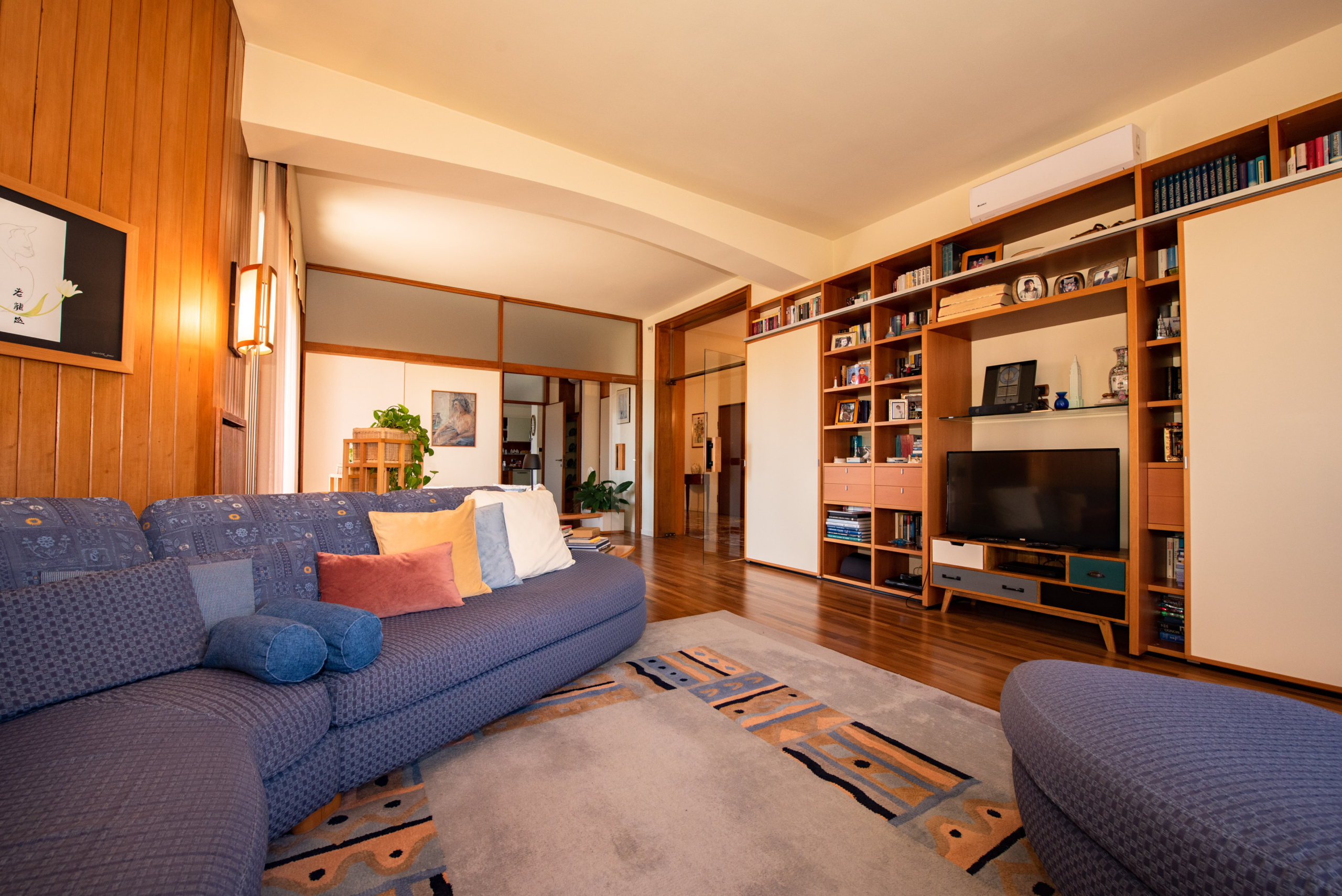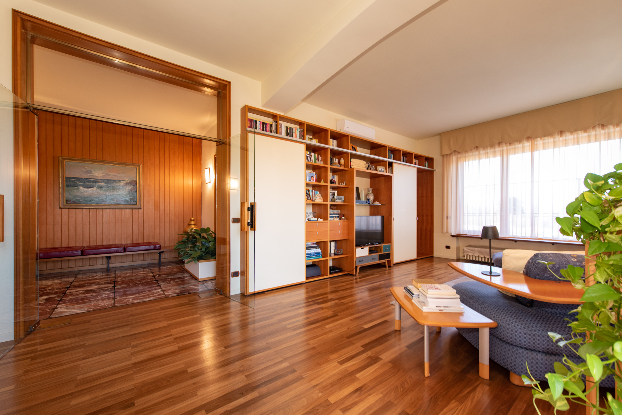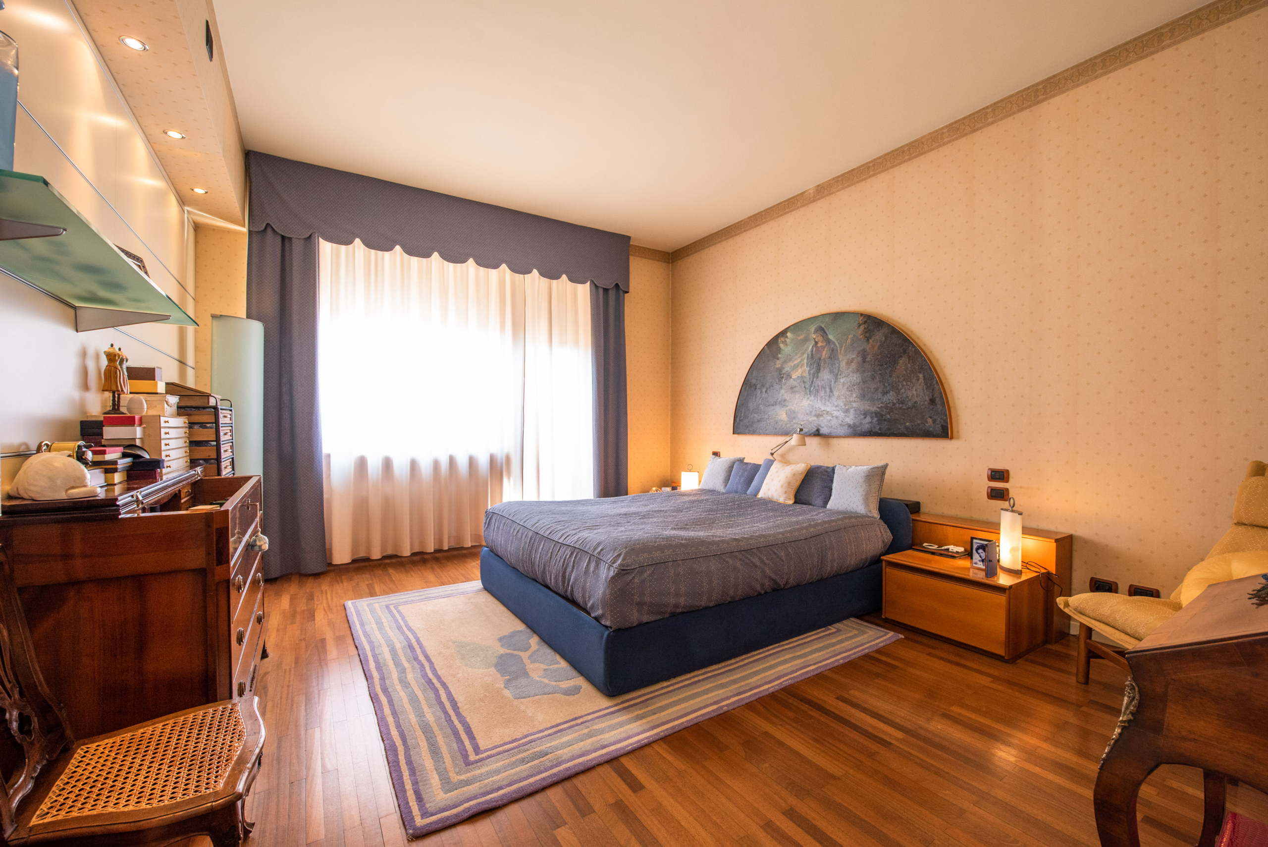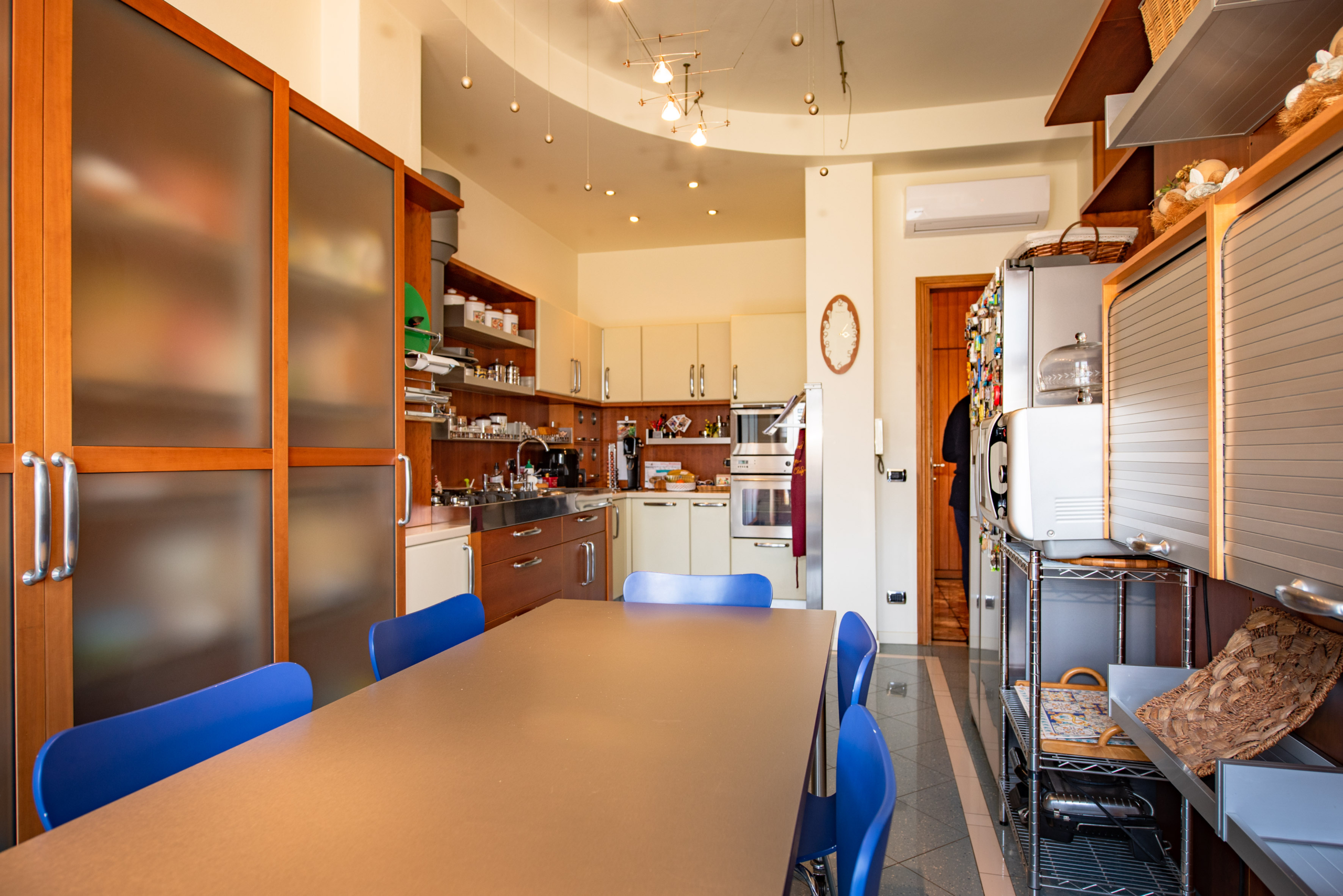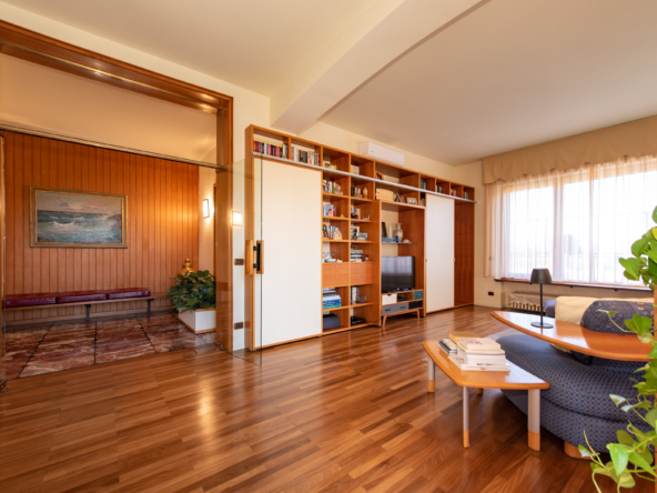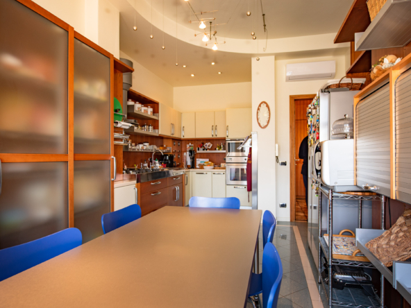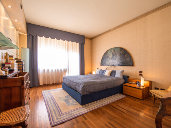 L’attico è stato progettato con estrema cura per il dettaglio e dotato di ogni comfort, inclusa la climatizzazione estiva e invernale. L’ingresso conduce a una cucina abitabile e a un raffinato living di circa 80 mq, reso luminosissimo dalle ampie vetrate. La zona notte ospita numerose camere, uno studio, tripli servizi, lavanderia e pratici disimpegni con arredi su misura, oltre a un ripostiglio.