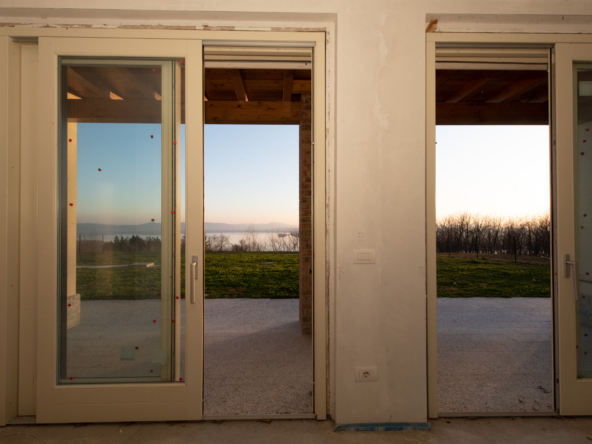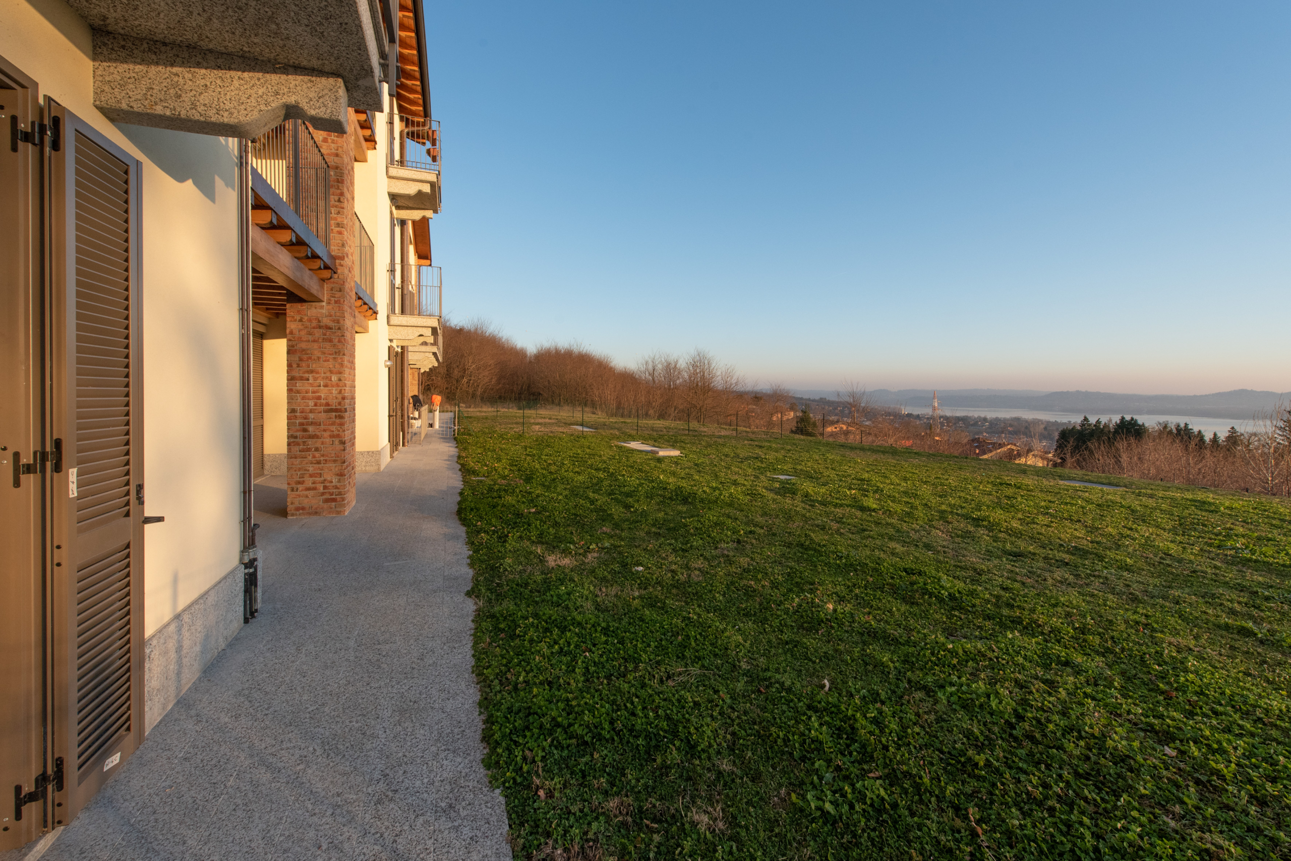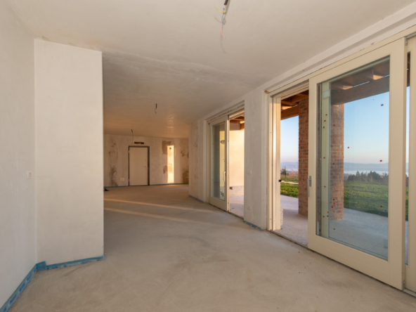 L’appartamento è parte di un comprensorio condominiale di charme, immerso nel verde e gode di un cannocchiale privilegiato sull’acqua e sulle montagne.