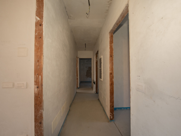 Al suo interno, l’appartamento si sviluppa come segue: l’ingresso immette nell’ampia zona living con cucina a vista. La zona giorno è pervasa dalla luce naturale grazie alle ampie vetrate che danno sul bellissimo dehors collegato al giardino privato. La zona notte è invece formata da tre camere da letto, studio e tre bagni. La camera padronale gode di bagno en suite e affaccia sul giardino privato, mentre le altre due camere affacciano sul giardinetto pertinenziale disposto sul retro dell’abitazione.