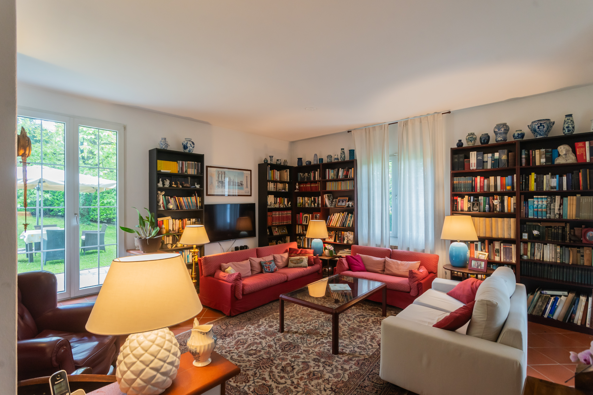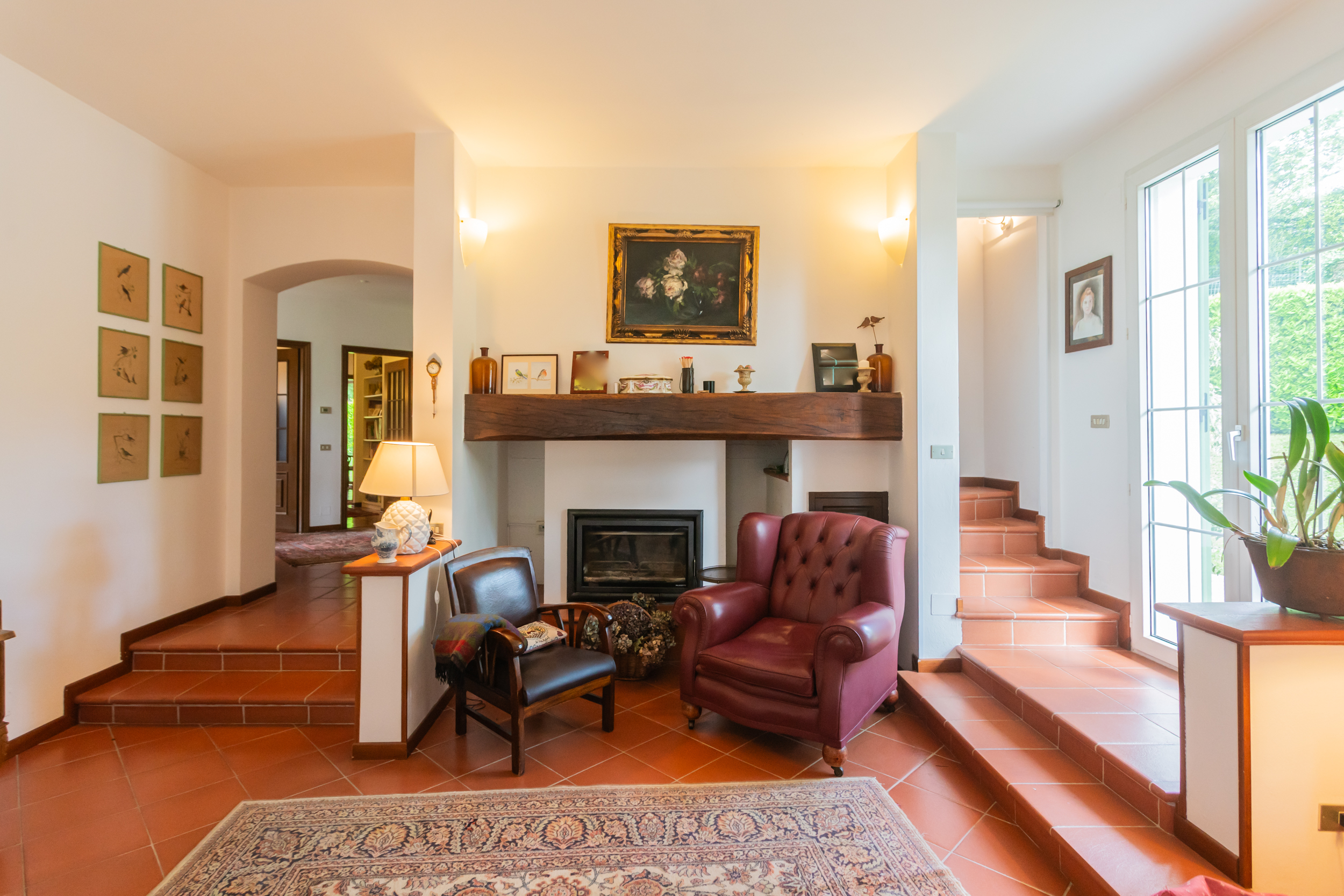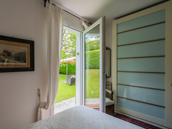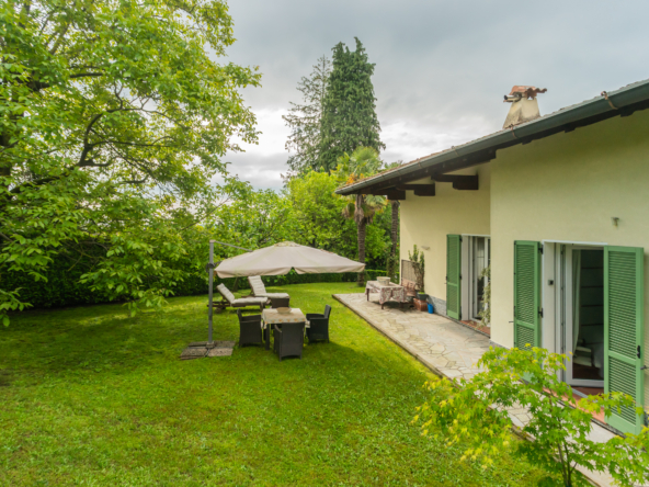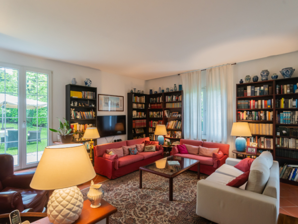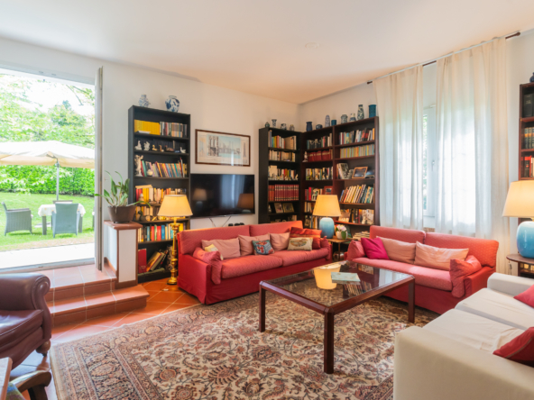 La villa è caratterizzata da una luminosità diffusa e da ambienti progettati per dialogare armoniosamente con la natura circostante. Elemento distintivo è la veranda, perfetto angolo relax dove trascorrere momenti di quiete affacciati sul verde del giardino.