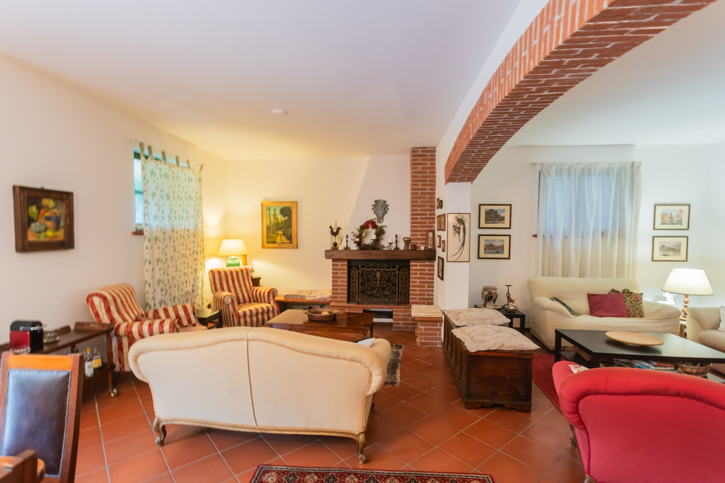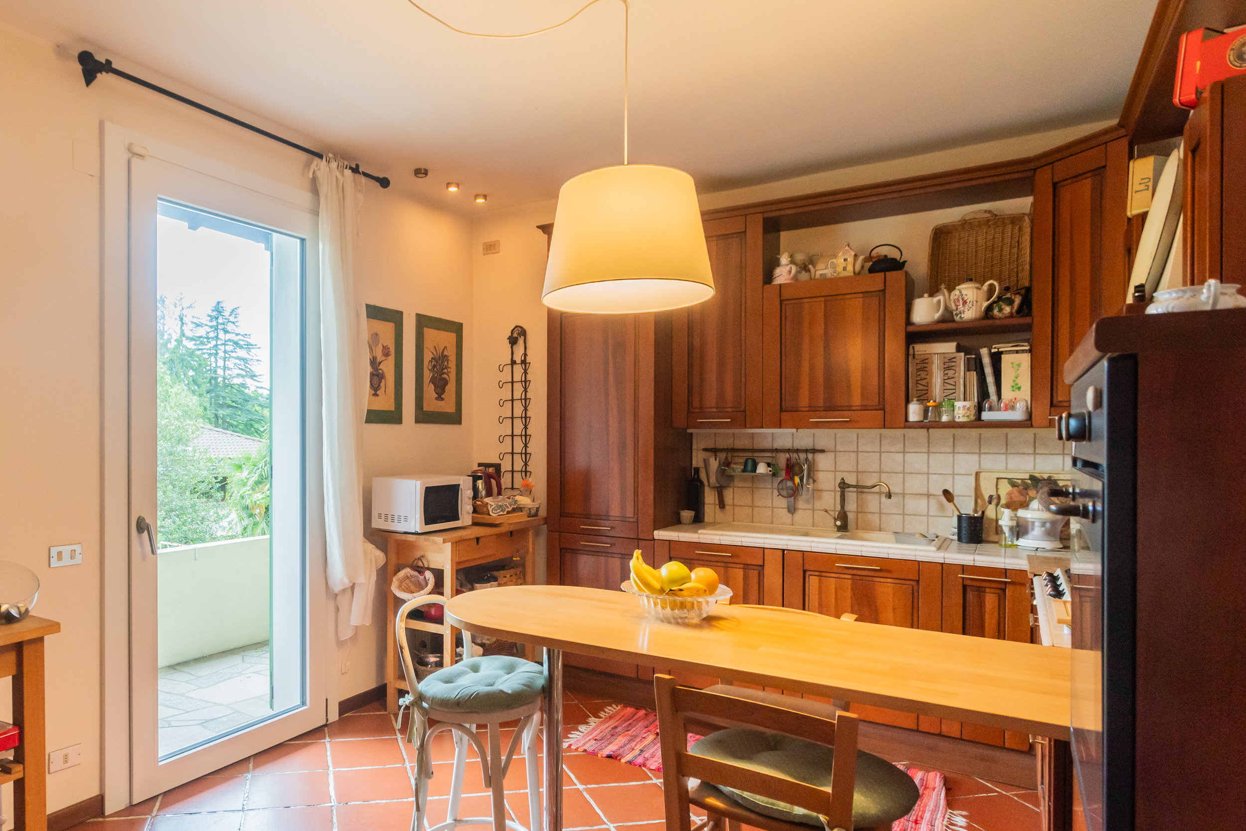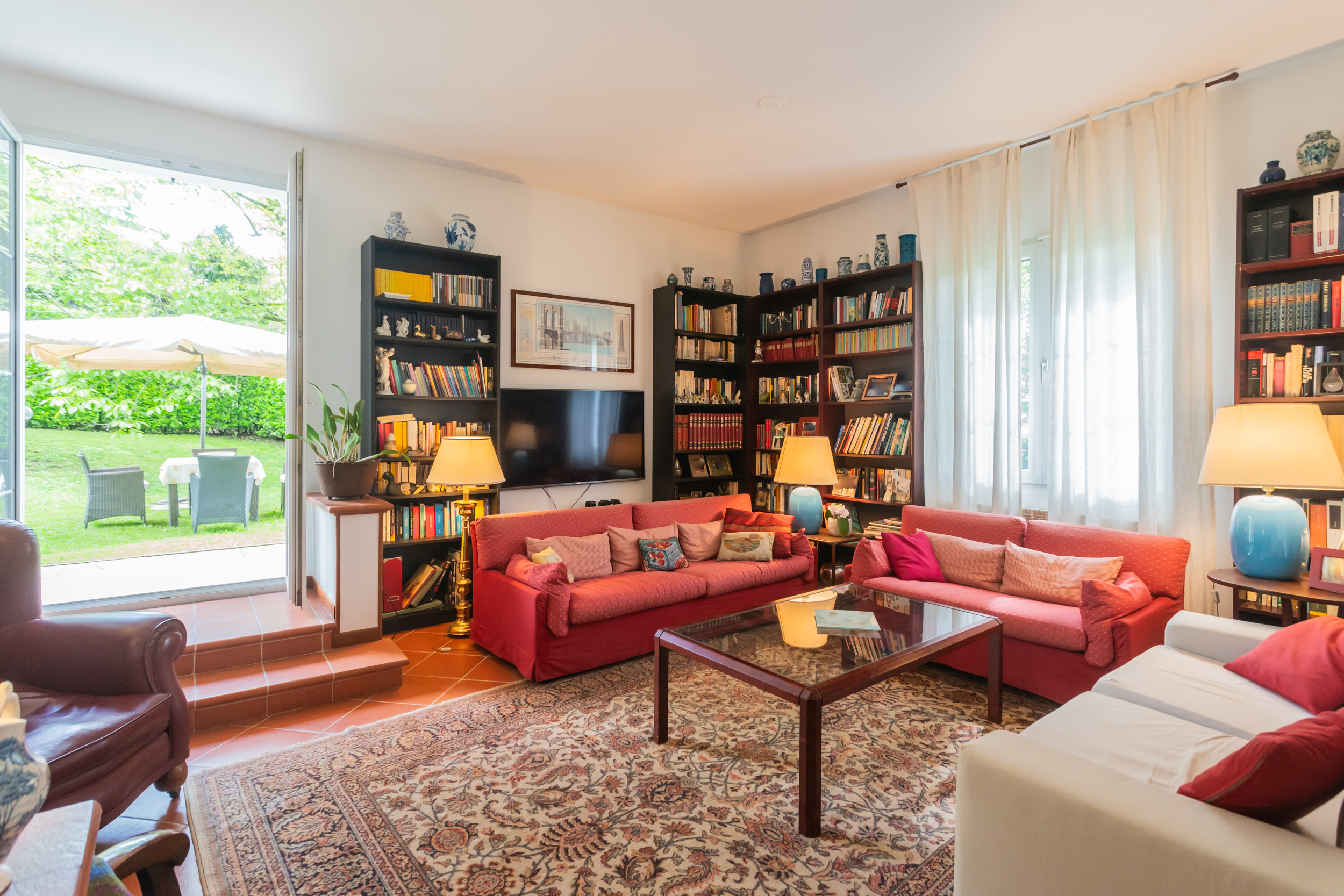 La villa è caratterizzata da una luminosità diffusa e da ambienti progettati per dialogare armoniosamente con la natura circostante. Elemento distintivo è la veranda, perfetto angolo relax dove trascorrere momenti di quiete affacciati sul verde del giardino.