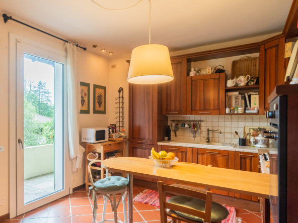 Lo stile dell’abitazione unisce eleganza e calore, grazie all’uso di toni naturali e materiali caldi, creando un’atmosfera accogliente e raffinata, ideale per chi cerca una residenza di charme in un contesto esclusivo.