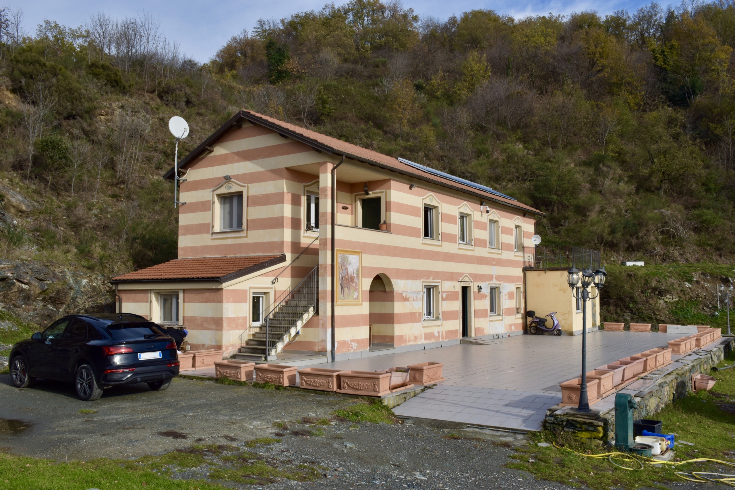 Nell’incantevole entroterra ligure, a pochi chilometri da Varazze e Celle Ligure, proponiamo in vendita una vasta azienda agricola con circa otto ettari di terreno e casolare ristrutturato, appartenuto alla famiglia del Presidente della Repubblica Italiana Sandro Pertini. Villa Liguria è ideale sia come proprietà da investimento, ripercorrendo le floride orme dell’agriturismo che una volta sorgeva qui, o come residenza privata, da cui godere di vedute mozzafiato sul mare e sulle montagne liguri. Al suo interno il casolare di Villa Liguria offre diverse stanze da letto, un grande salone ed una cucina industriale attrezzata. Gli attuali proprietari lo hanno ristrutturato dotandolo di pannelli solari e riscaldamento a pavimento, incrementando così le prestazioni energetiche dell’edificio. La ristrutturazione non ha però denaturato l’anima antica di questo casolare, con la tradizionale livrea a strisce orizzontali, che regala un angolo privato di paradiso ligure immerso nel verde del terreno di proprietà. Villa Liguria offre l’opportunità di passeggiare indisturbati fino alle pendici delle colline sovrastanti, magari in compagnia dei cavalli, o delle capre che hanno già qui i propri alloggi. Nonostante il livello di privacy di cui questo luogo gode, non si tratta assolutamente di una posizione isolata. Varazze dista solo 8km dal cancello e rende pertanto questa tenuta assolutamente in linea sia con gli interessi di chi ama il mare, sia di chi predilige la collina e la verde compagnia della Liguria. Riteniamo che Villa Liguria, per le meravigliose vedute, la posizione unica e la bellezza del casolare e del terreno, sia assolutamente appetibile ad una sofisticata clientela internazionale, desiderosa di stabilire qui la propria residenza secondaria, o di aprire una fiorente attività ricettiva ad oggetto agricolo, sfruttando gli indotti di una tenuta equestre, ben connessa con la rete autostradale nazionale. Posizione: La tenuta si trova a San Martino Stella, sopra i paesi di Varazze, Celle Ligure e Albissola, raggiungibili percorrendo 8km di strada asfaltata. La metropoli di Genova dista circa quaranta minuti di auto dal casolare e connette la Liguria al resto del Mediterraneo grazie al suo porto ed aeroporto. Varazze, una delle rinomate perle della riviera di Ponente, offre un lussuoso porto di recente costruzione, dove poter ormeggiare, o passeggiare tra diversi negozi e ristoranti.