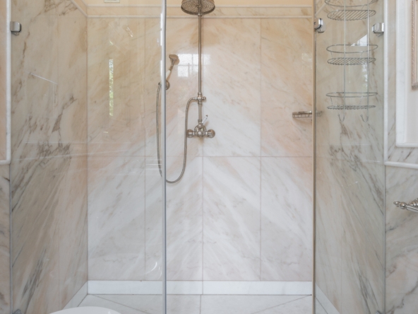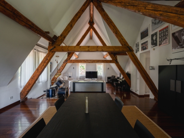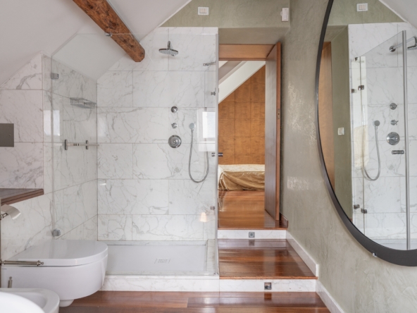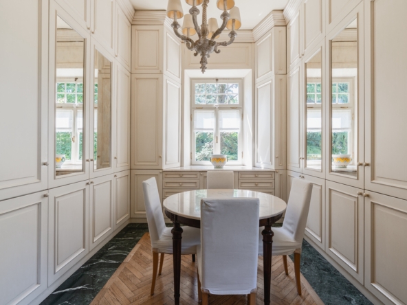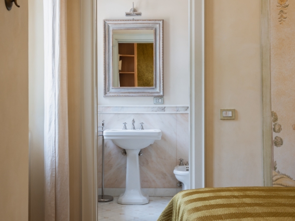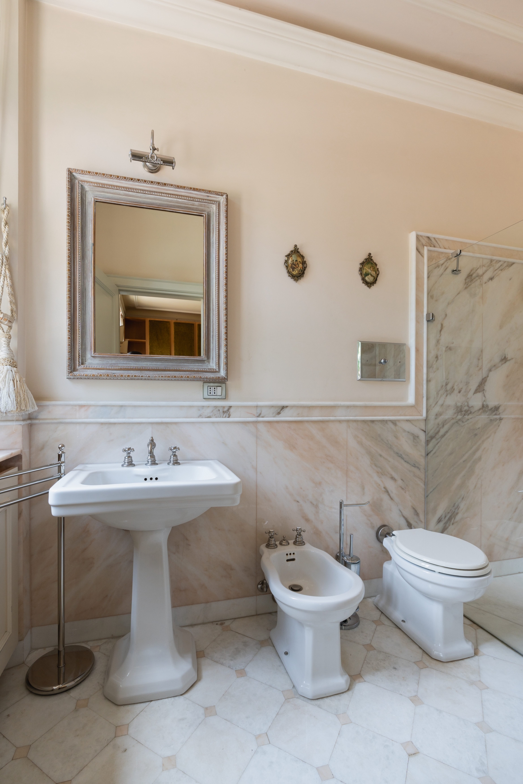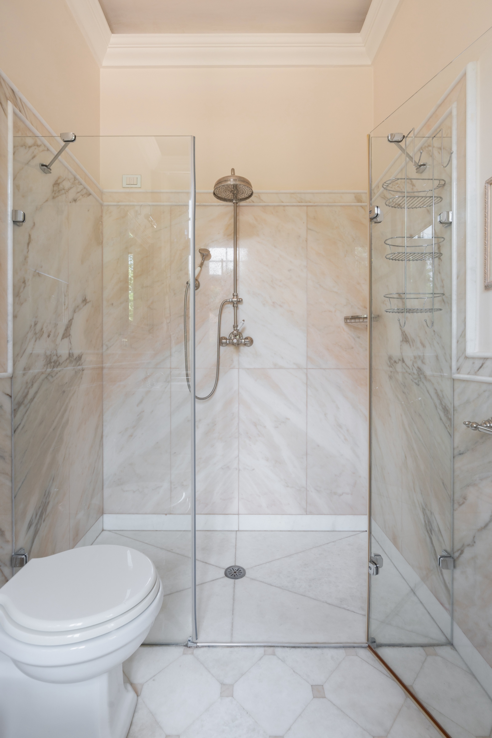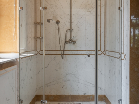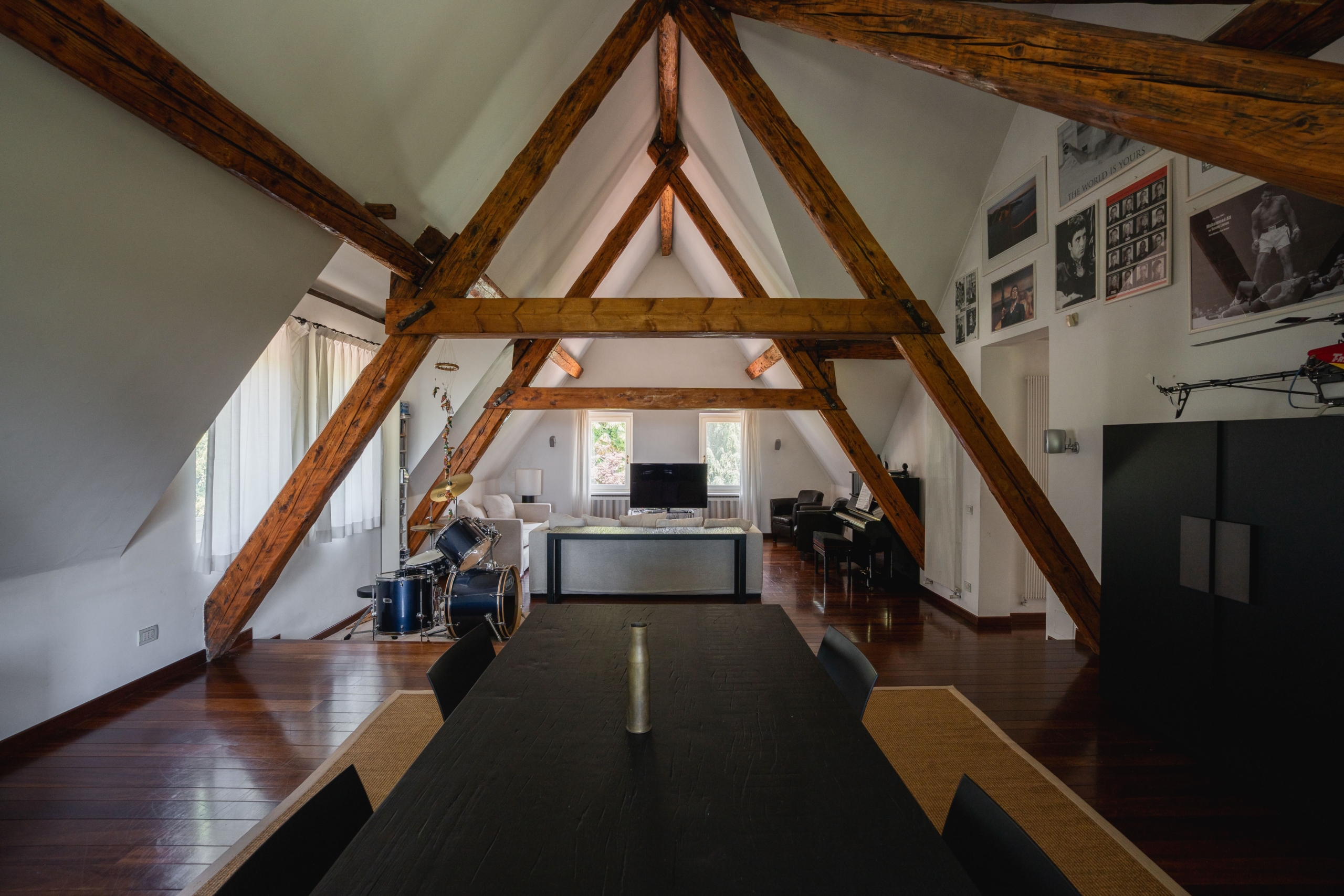 L’immobile dispone, tra i numerosi servizi, di una zona biblioteca, di un’ampia sala da pranzo, di un salotto padronale e di quattro camere da letto principali. Tra queste spicca per bellezza la “master suite” dotata di bagno in marmo e cabina armadio dedicata. Oltre a ciò, la proprietà dispone di una cucina professionale attrezzata che, insieme ad un’ulteriore sala da pranzo ed alla sala cinema, occupa il livello seminterrato.
