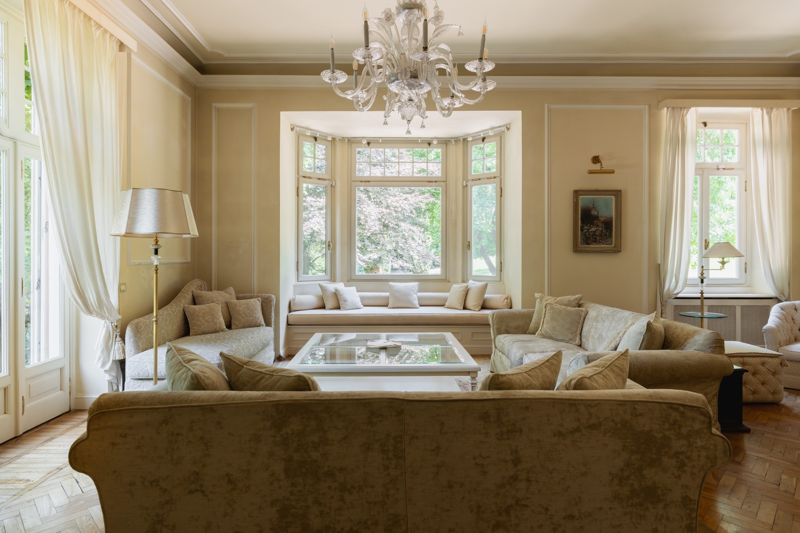 Al suo interno la villa principale è un capolavoro di arredamento classico, interamente ripensato alcuni anni fa per coniugare lo stile sfarzoso con i canoni di comfort imposti dalla modernità.