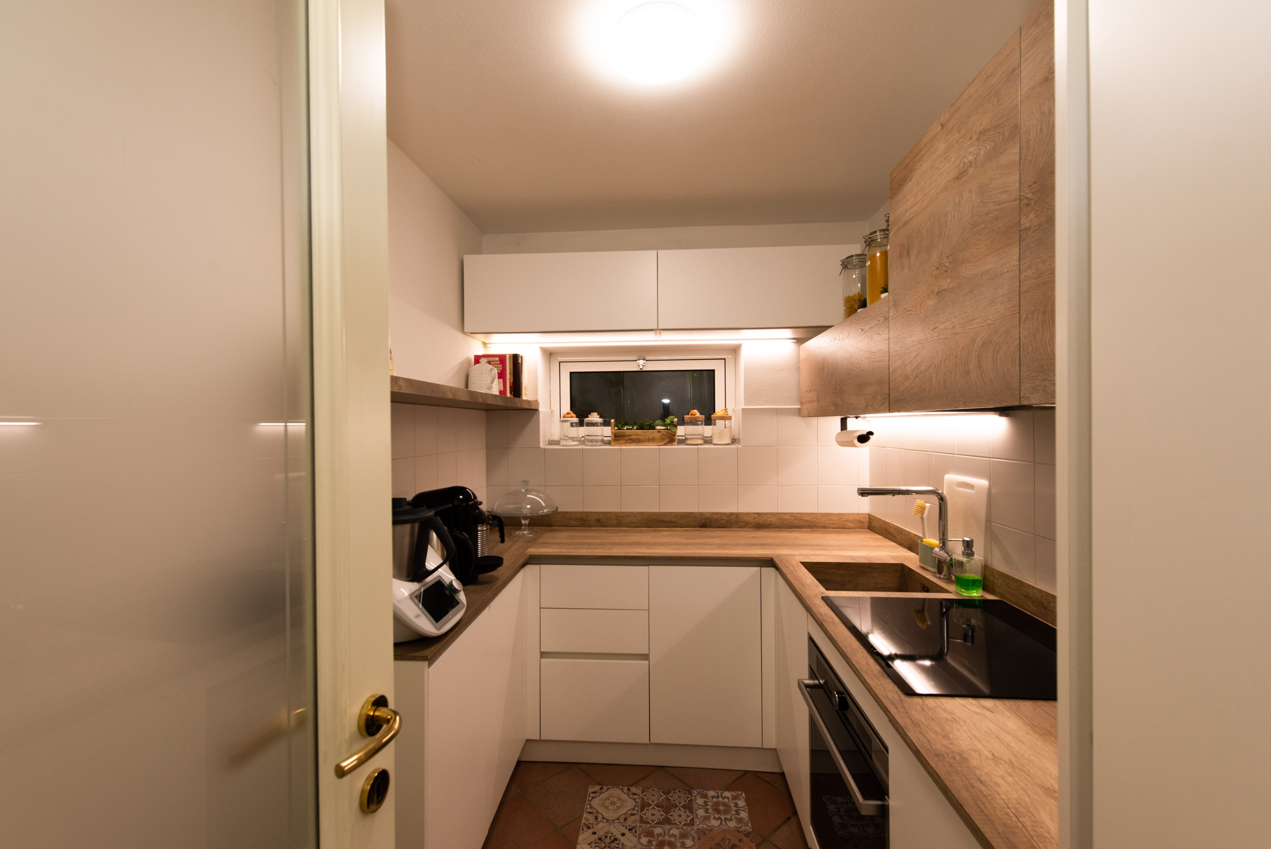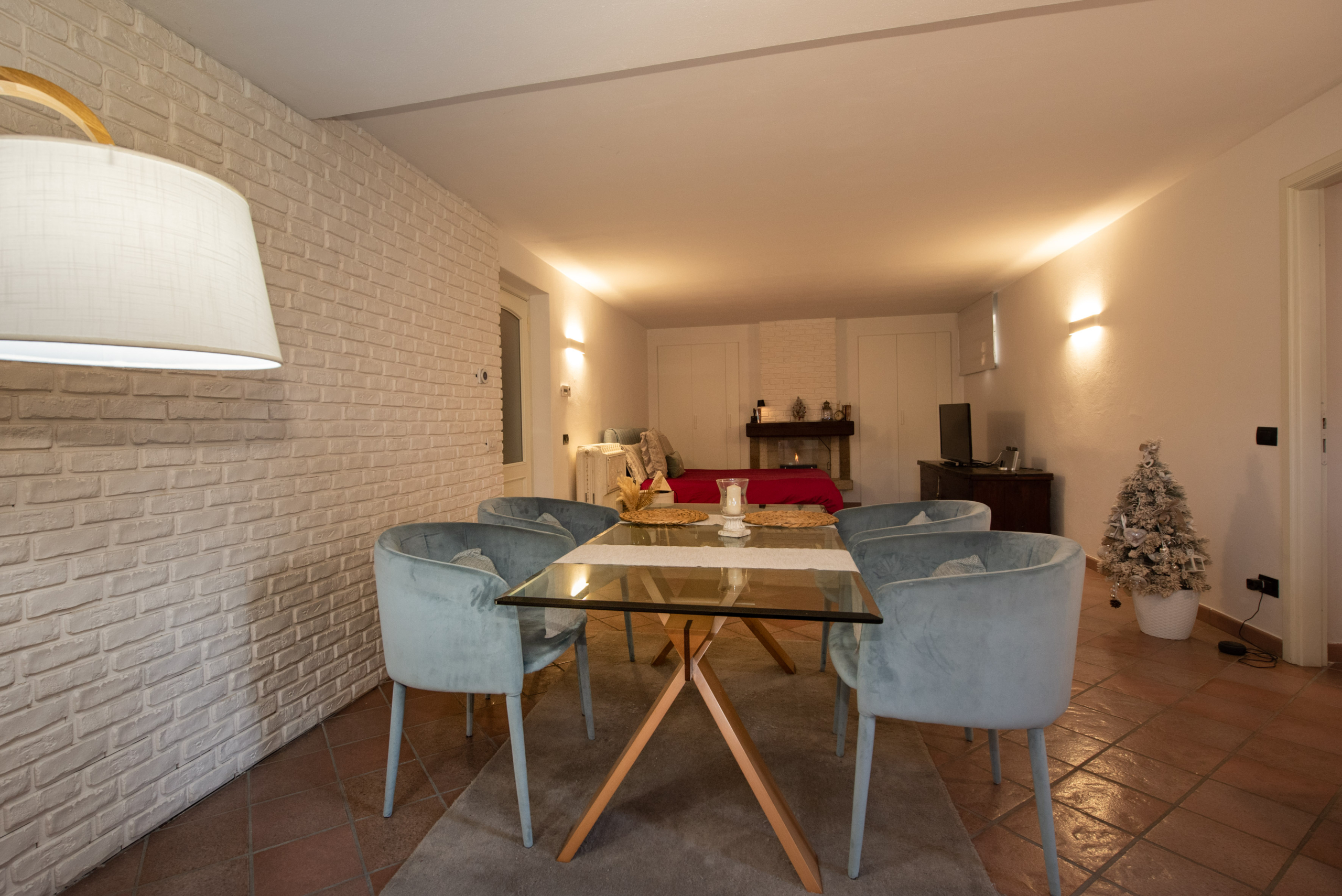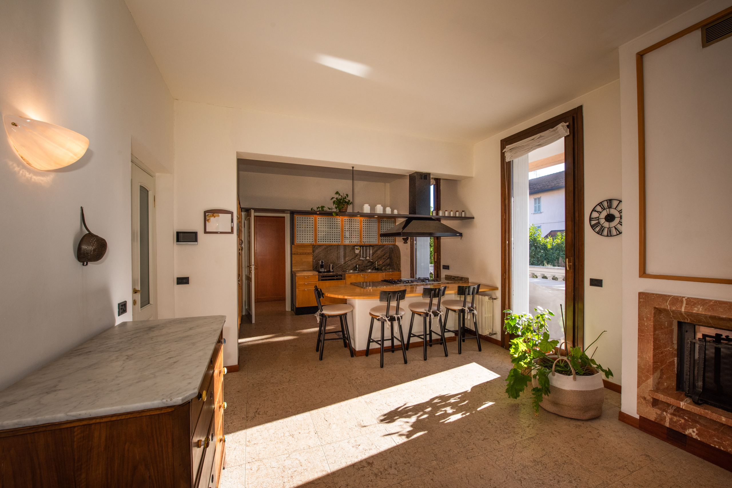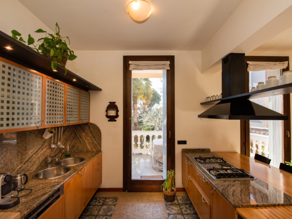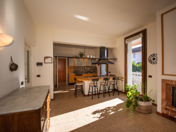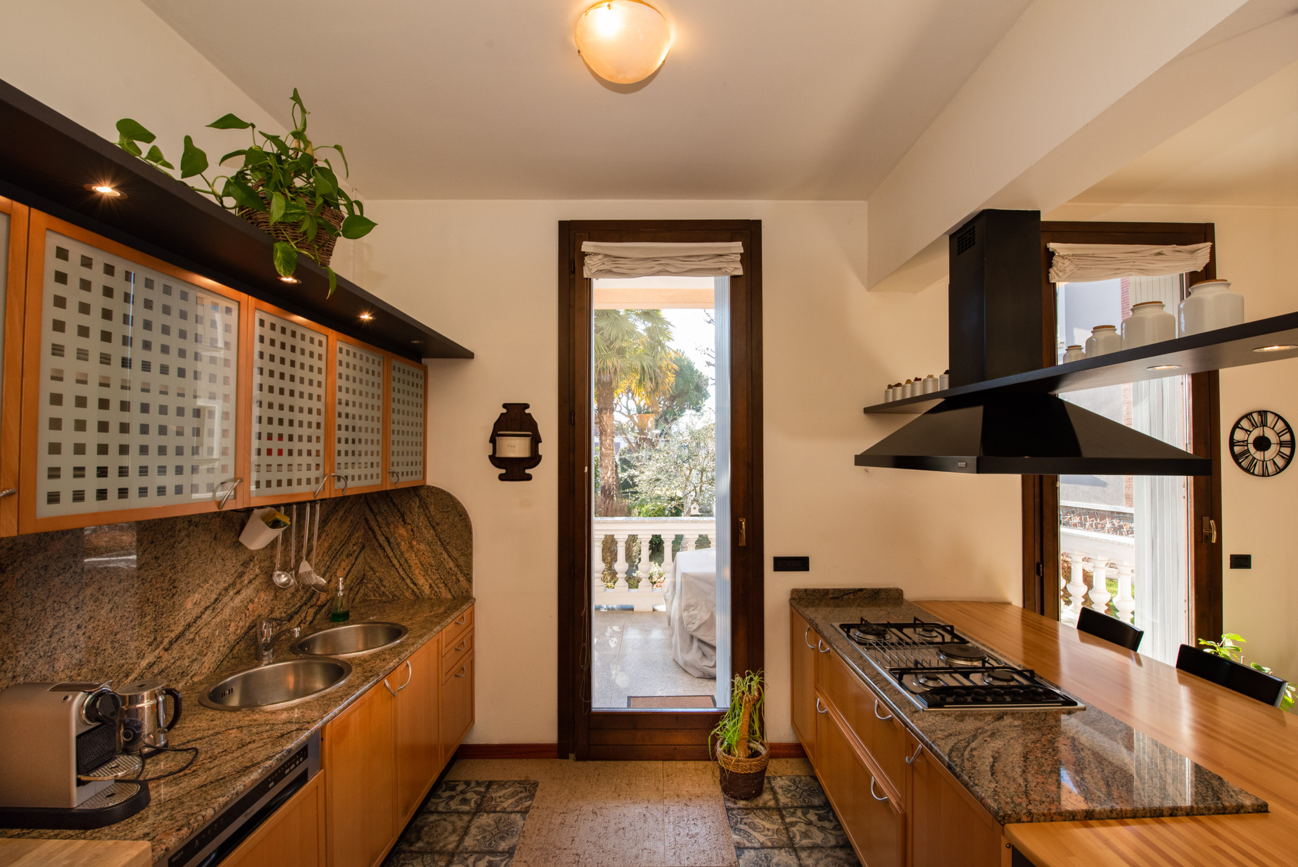 Il sapiente dialogo tra gli spazi interni ed esterni, ben visibile ad esempio nella veranda antistante l’ampia cucina, dona luminosità alla casa e la inserisce perfettamente nel contesto del proprio giardino privato.