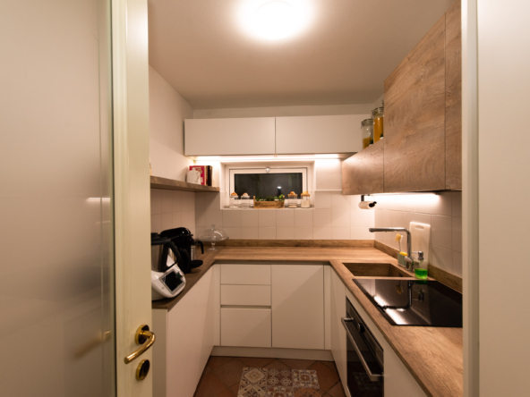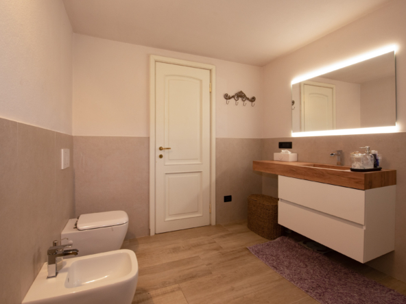 L’ambiente della dimora si presenta molto accogliente, grazie all’utilizzo di finiture in legno, che regalano alla villa un’atmosfera calorosa ed informale.